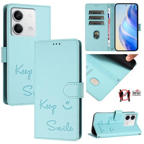 Funda de Cuero Rfid con Relieve de Sonrisa Global para Redmi Note 13 5G (Verde Menta)