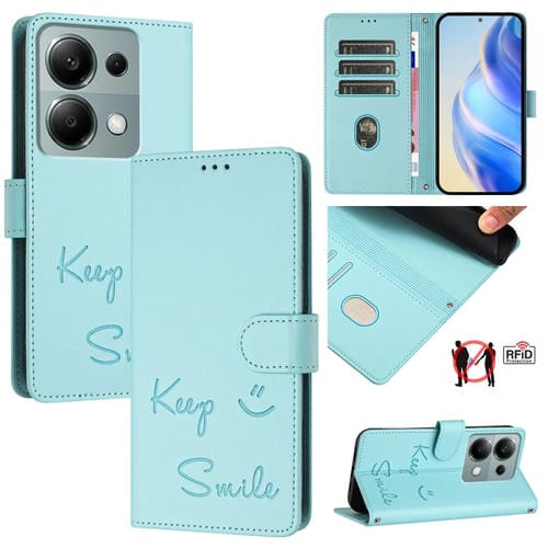 Funda de Cuero Rfid con Relieve de Sonrisa Global para Redmi Note 13 Pro 4G (Verde Menta)