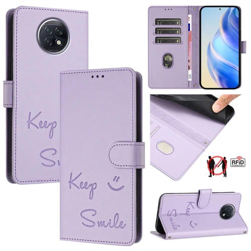 Funda de Cuero Rfid con Relieve de Sonrisa Global para Redmi Note 9T (Morado Claro)