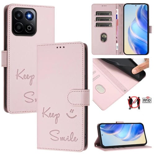 Funda de Cuero Rfid con Relieve Sonrisa Global para Honor 200 Smart 5G (Rosa)