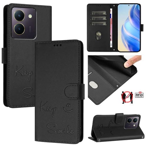 Funda de Cuero Rfid con Relieve de Sonrisa India para Vivo Y36 4G (Negra)