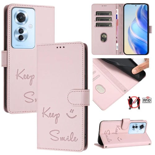 Funda de Cuero Rfid con Relieve de Sonrisa para Oppo F25 Pro 5G (Rosa)