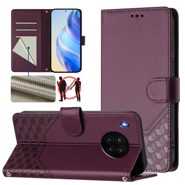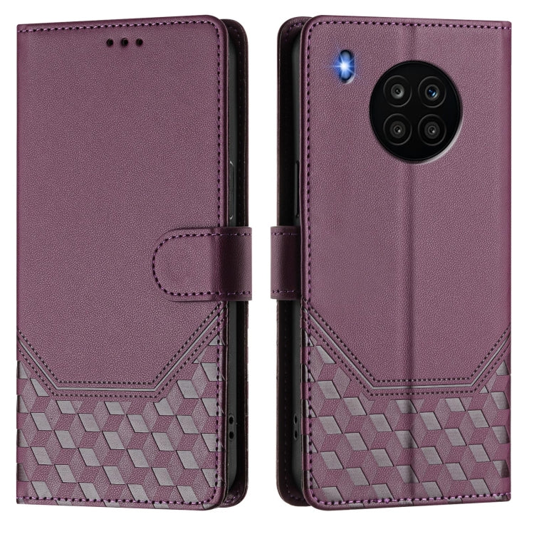 Funda de Cuero Rfid con Relieve en Panal para Huawei Nova 8I (Violeta)