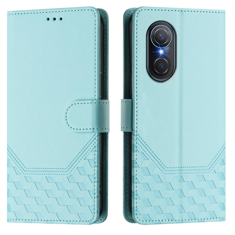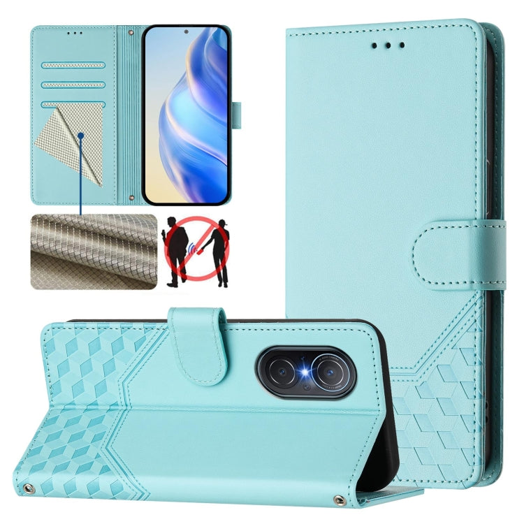 Funda de Cuero Rfid con Relieve en Panal para Huawei Nova 9 Se y Honor 50 Se (Verde Menta)