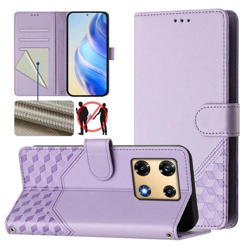 Funda de Cuero Rfid con Relieve en Panal para Infinix Note 30 Pro 4G (Morado Claro)