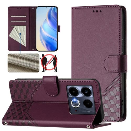 Funda de Cuero Rfid con Relieve en Panal para Infinix Note 40 4G (Violeta)