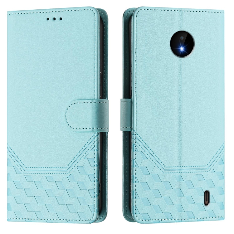 Funda de Cuero Rfid con Relieve en Panal para Nokia C10/C20 (Verde Menta)