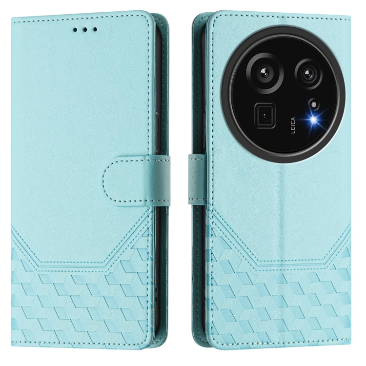 Funda de Cuero Rfid con Relieve en Panal para Sharp Aquos R9 Pro (Verde Menta)