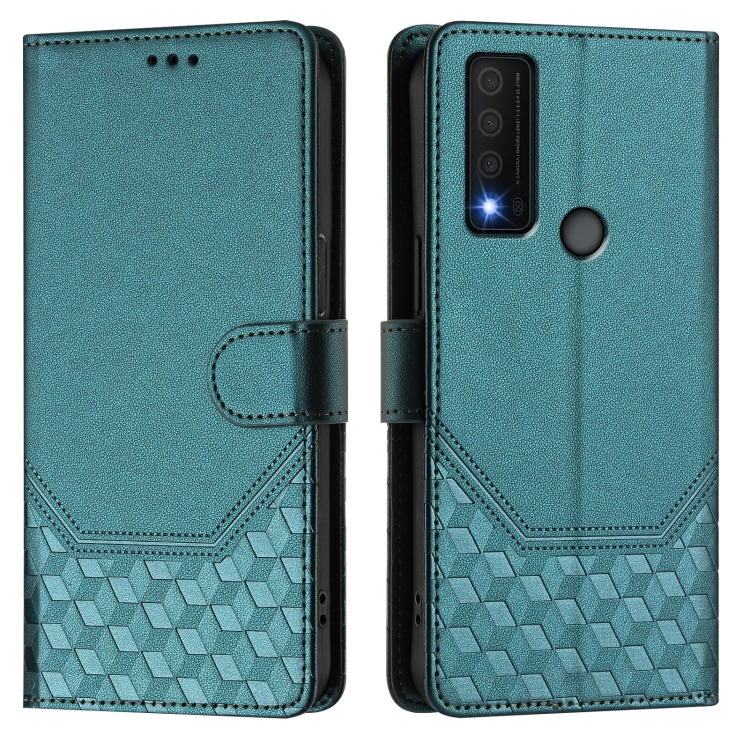 Funda de Cuero Rfid con Relieve en Panal para TCL 30 Xe 5G (Verde Pavo Real)