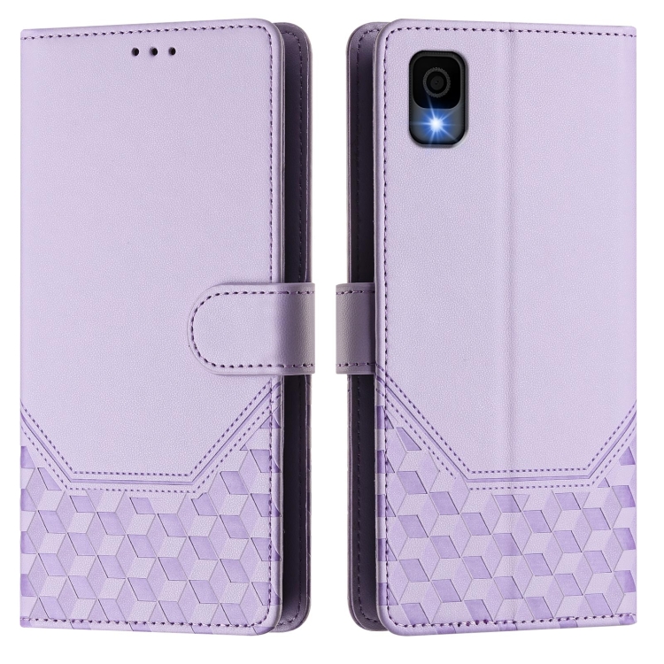 Funda de Cuero Rfid con Relieve en Panal para TCL 30Z (Morado Claro)