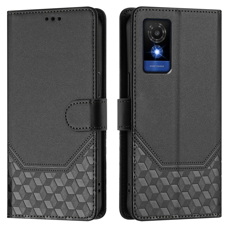 Funda de Cuero Rfid con Relieve en Panal para TCL 501 (Negra)