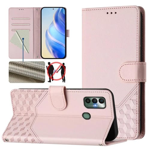 Funda de Cuero Rfid con Relieve en Panal para Tecno Spark 7 y Spark 7T (Rosa)