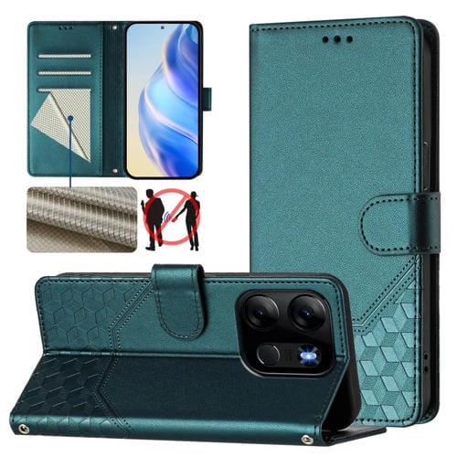 Funda de Cuero Rfid con Relieve en Panal para Tecno Spark Go 2023/Infinix Smart 7 (Verde Pavo Real)