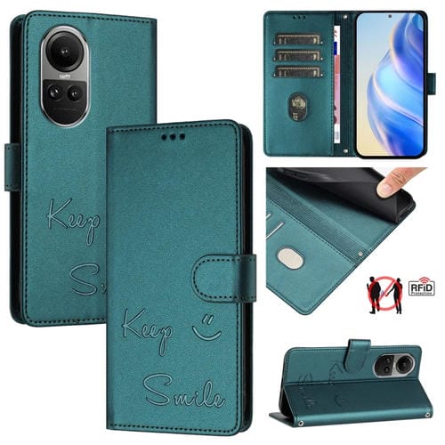 Funda de Cuero Rfid con Relieve Global Smile para Oppo Reno10/Reno10 Pro (Verde Pavo Real)