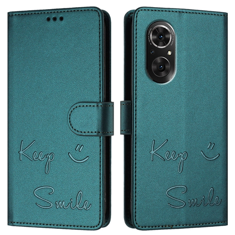 Funda de Cuero Rfid con Relieve Sonriente para Huawei Nova 9 Se (Verde Pavo Real)