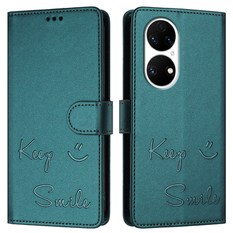 Funda de Cuero Rfid con Relieve Sonriente para Huawei P50 (Verde Pavo Real)