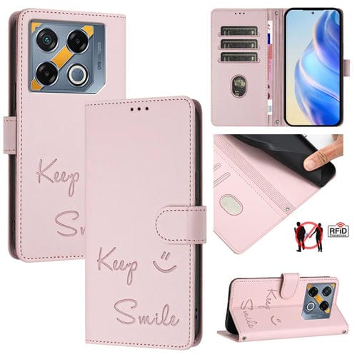 Funda de Cuero Rfid con Relieve Sonriente para Infinix Gt 20 Pro X6871 (Rosa)