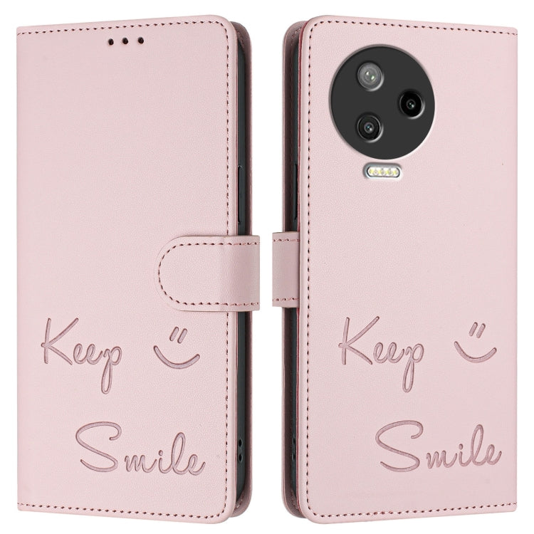 Funda de Cuero Rfid con Relieve Sonriente para Infinix Note 12 Pro 4G/Note 12 (2023) (Rosa)