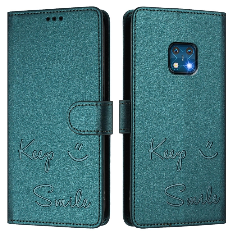 Funda de Cuero Rfid para Nokia Xr20 con Relieve Sonriente (Verde Pavo Real)
