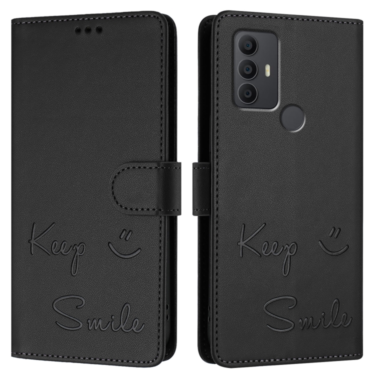 Funda de Cuero Rfid con Relieve Sonriente para TCL 305/306 (Negra)