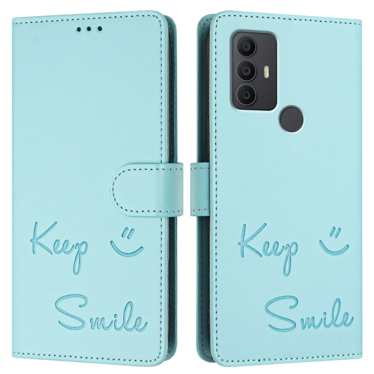 Funda de Cuero Rfid con Relieve Sonriente para TCL 305/306 (Verde Menta)