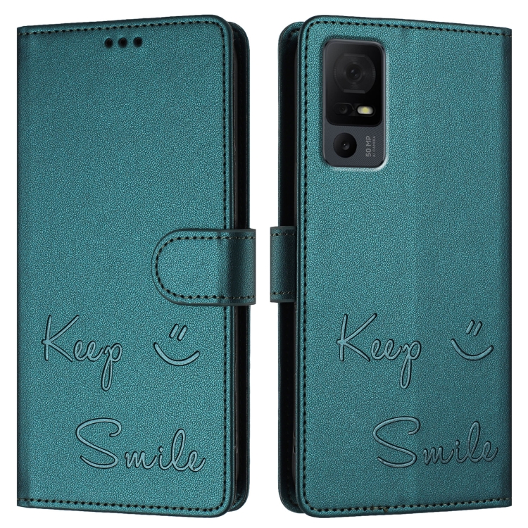 Funda de Cuero Rfid con Relieve Sonriente para TCL 40 Xl/40 T T608Dl (Verde Pavo Real)