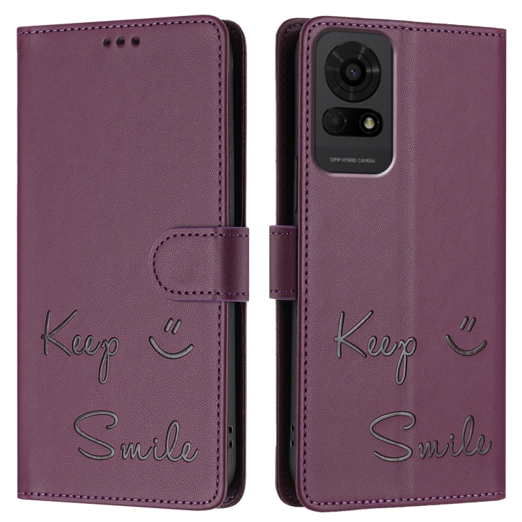 Funda de Cuero Rfid con Relieve Sonriente para TCL 50 Le 5G (Violeta)