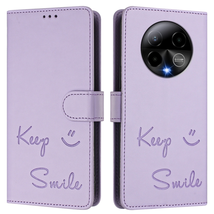 Funda Cuero RFID con Relieve Sonriente para Blu Bold K50 (Morado Claro)