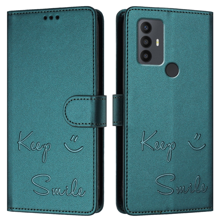 Funda de Cuero Rfid con Relieve Sonriente para Teléfono TCL 30 Se (Verde Pavo Real)