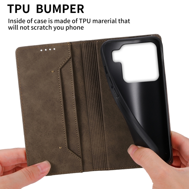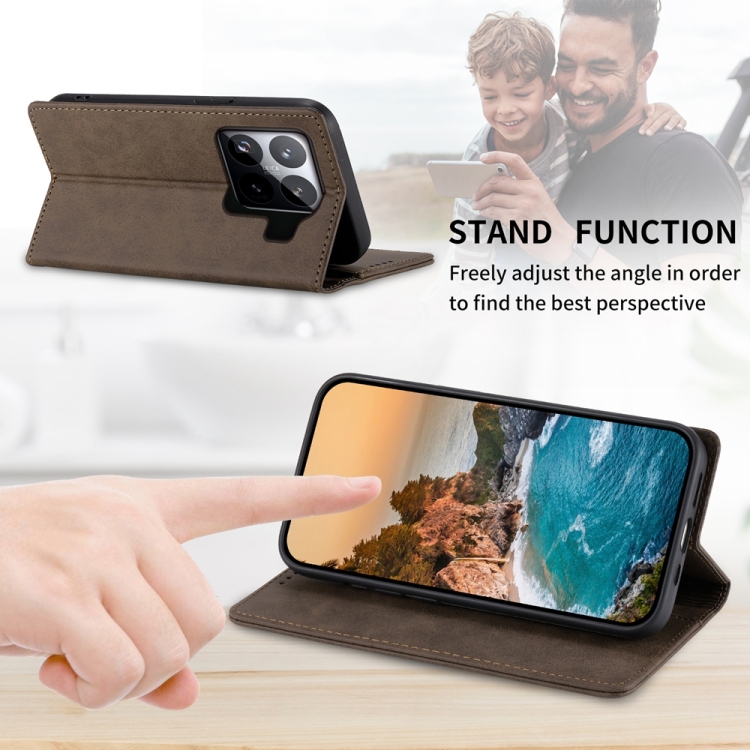 Funda De Cuero Rfid Magnética Para Xiaomi 15 Business (Marrón)