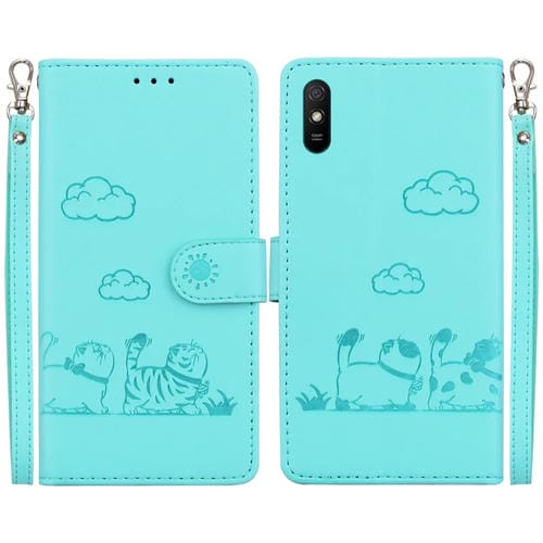 Funda de Cuero Rfid con Diseño de Gatos para Redmi 9A/9I Sport (Verde)