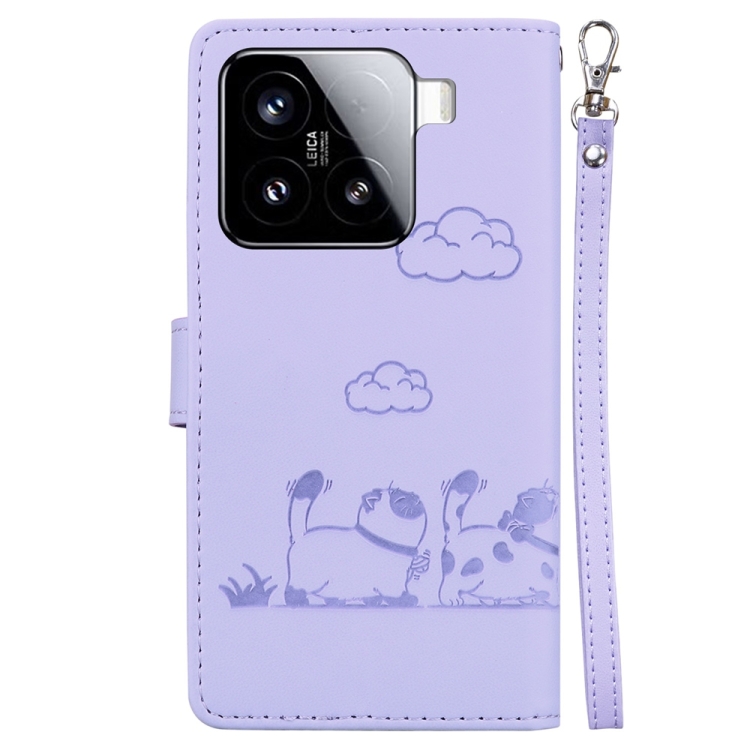 Funda De Cuero Rfid Con Diseño De Gatos Para Xiaomi 15 (Morada)