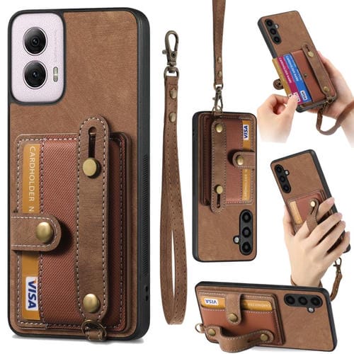 Funda de Cuero Tipo Billetera con Correa Cruzada para Motorola Moto G Power 5G (2024) (Marrón)