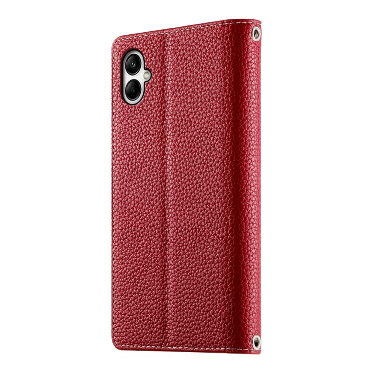 Funda de cuero tipo billetera con cremallera para Samsung Galaxy A05, con costuras, múltiples tarjetas y correa corta (roja)