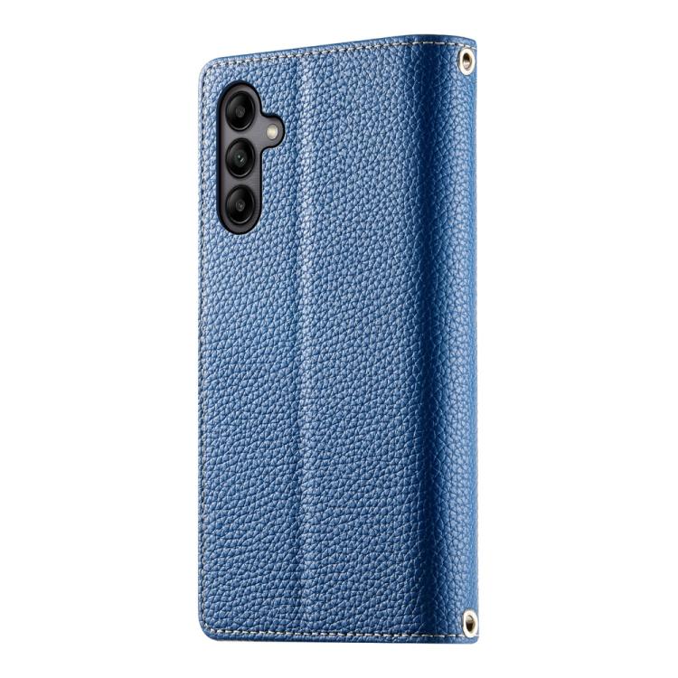 Funda de cuero tipo billetera con cremallera para Samsung Galaxy A05s, con costuras, múltiples tarjetas y correa corta (azul oscuro)