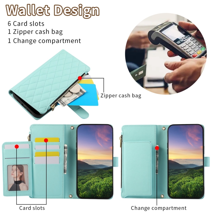 Funda de Cuero Tipo Billetera con Cremallera Rombal para Google Pixel 6 Pro (Cian)