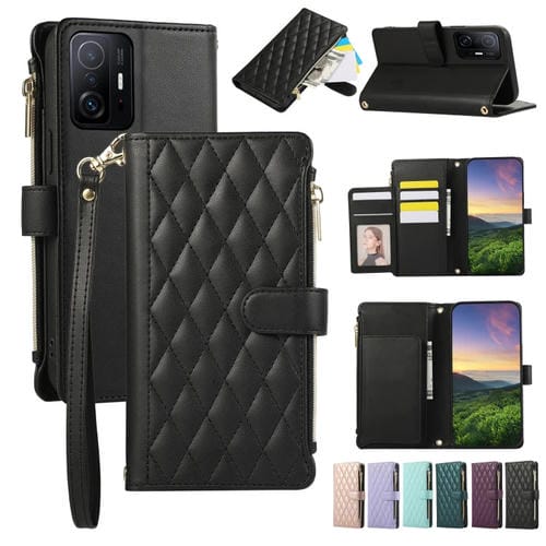Funda de Cuero Tipo Billetera con Cremallera Rombal para Xiaomi Mi 11T (Negra)