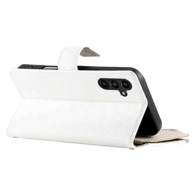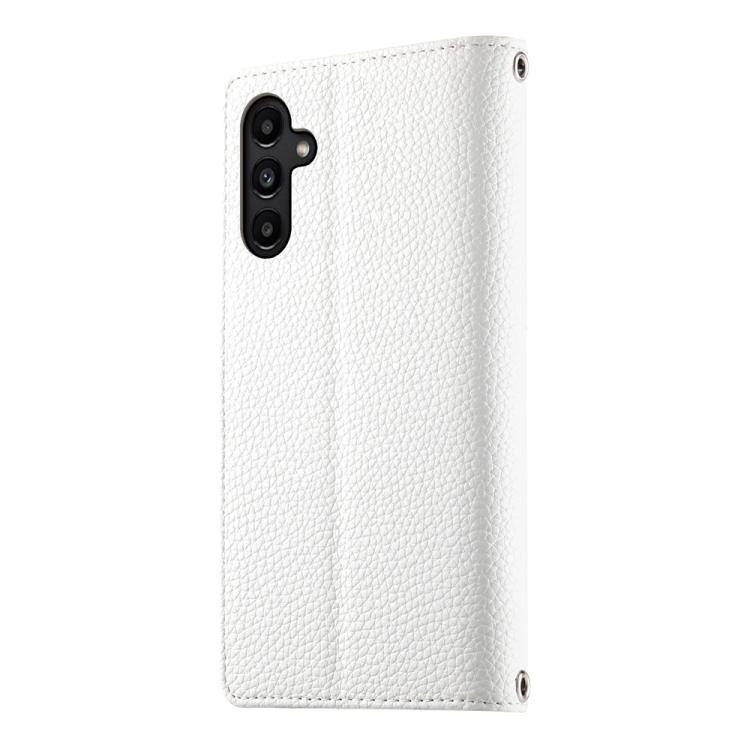 Funda de cuero tipo billetera con cremallera y múltiples tarjetas para Samsung Galaxy A14 4G/5G con costuras y correa corta (blanca)