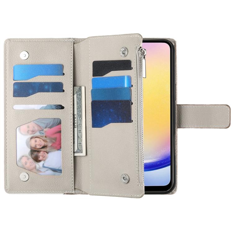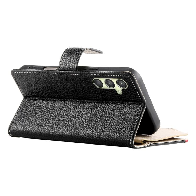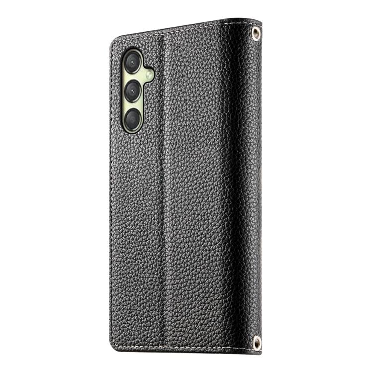 Funda de cuero tipo billetera con cremallera y múltiples tarjetas para Samsung Galaxy A25 5G, con costuras y correa corta (negra)