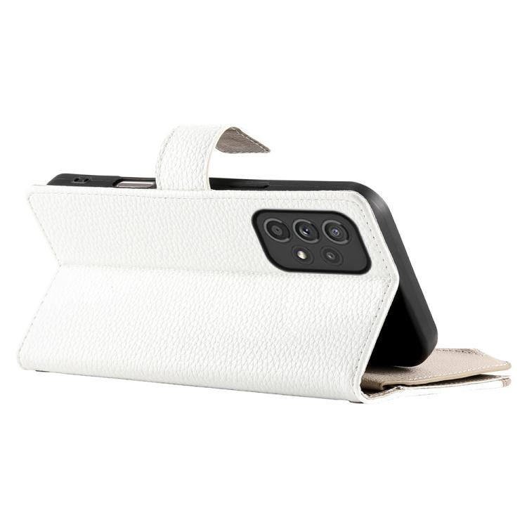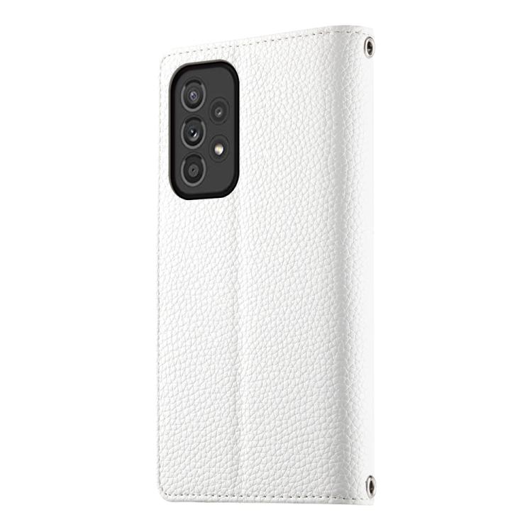 Funda de cuero tipo billetera con cremallera y múltiples tarjetas para Samsung Galaxy A33 5G, con costuras y correa corta (blanca)