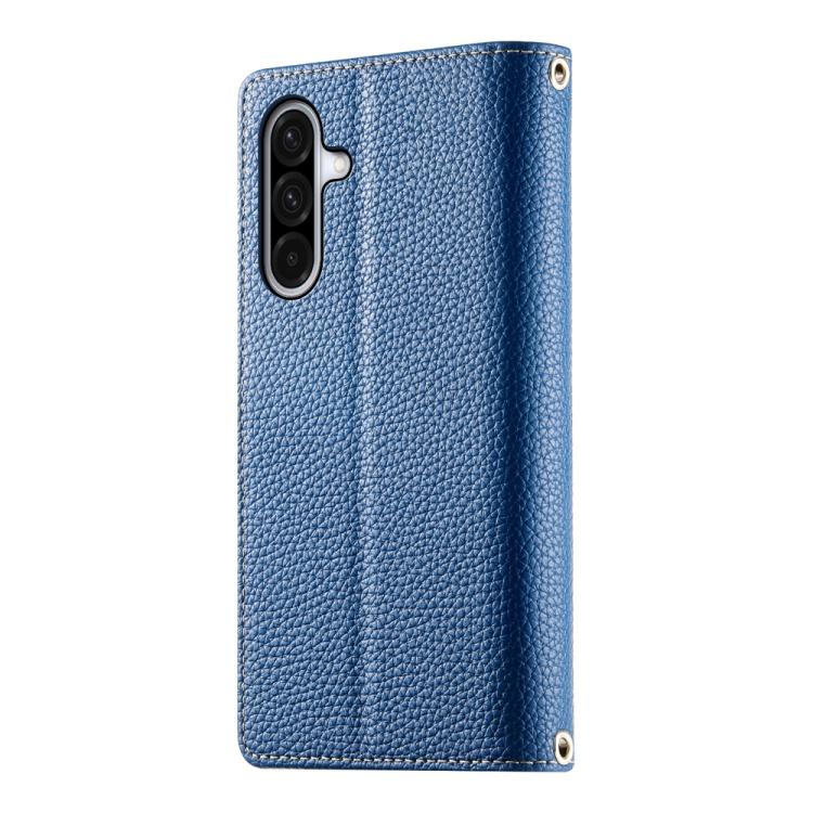 Funda de cuero tipo billetera con cremallera y múltiples tarjetas para Samsung Galaxy A36 5G, con costuras y correa corta (azul oscuro)