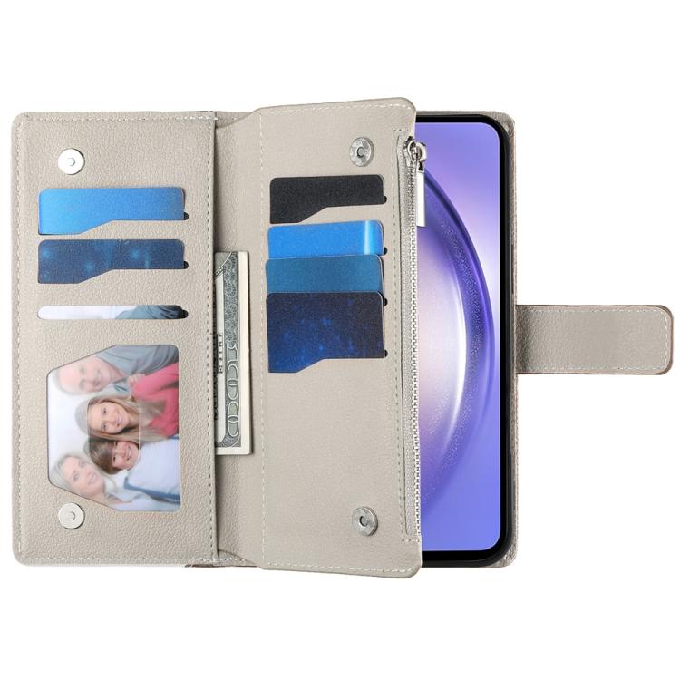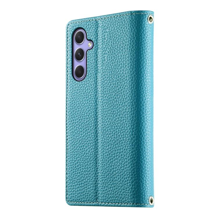 Funda de cuero tipo billetera con cremallera y múltiples tarjetas para Samsung Galaxy A54 5G, con costuras y correa corta (azul)