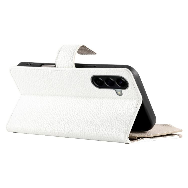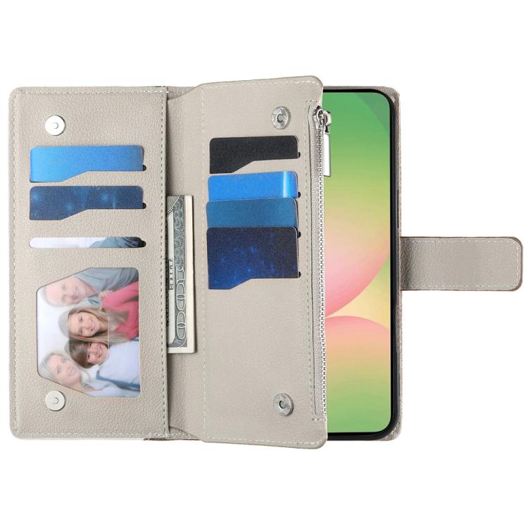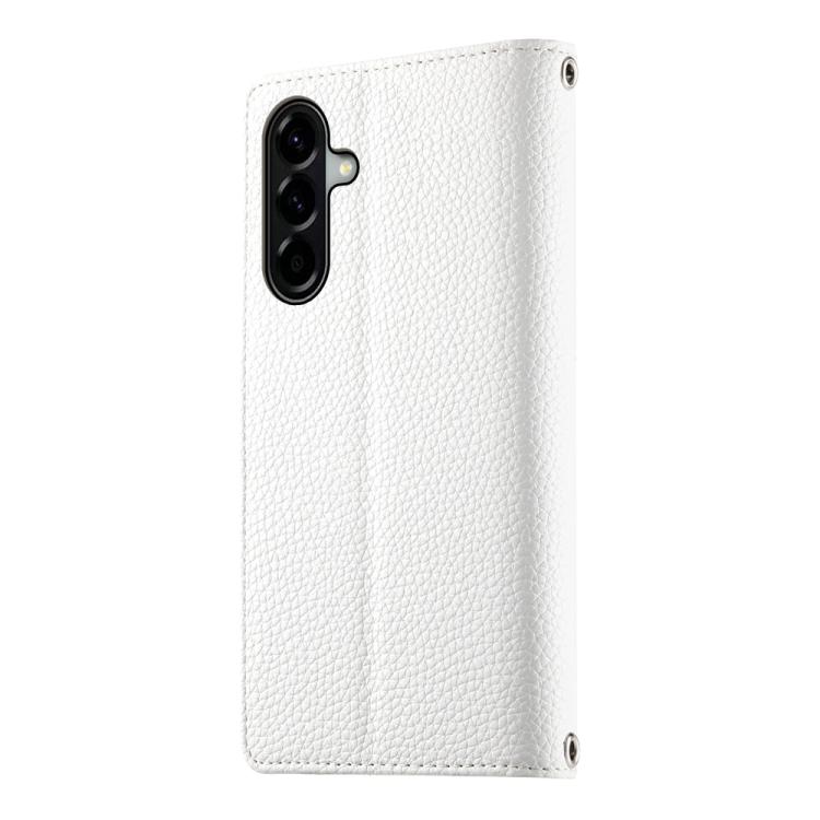 Funda de cuero tipo billetera con cremallera y múltiples tarjetas para Samsung Galaxy A56 5G, con costuras y correa corta (blanca)