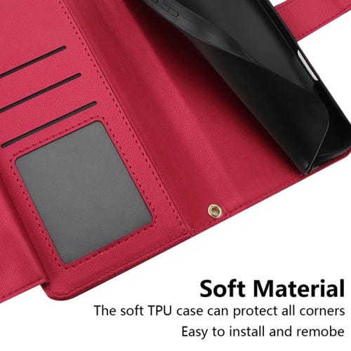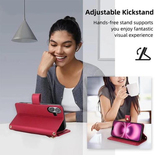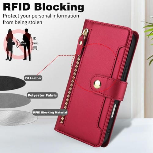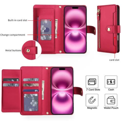 Funda de cuero tipo billetera con cremallera y siete ranuras para tarjetas para iPhone 17 (roja)