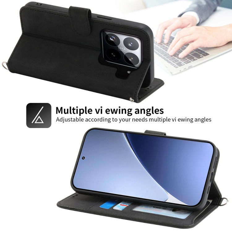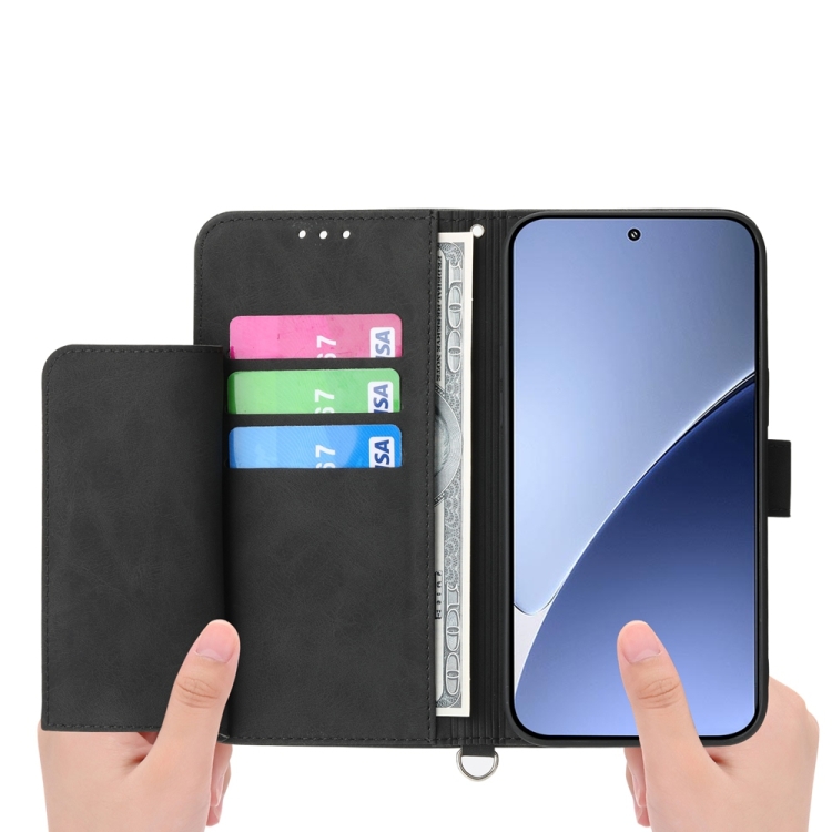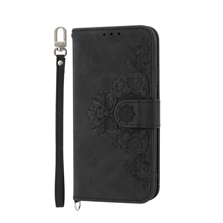 Funda De Cuero Tipo Billetera Con Relieve De Flores Y Tacto De Piel Para Xiaomi 15 (Negra)