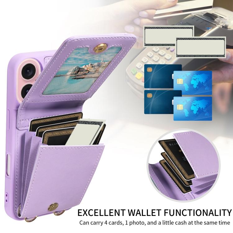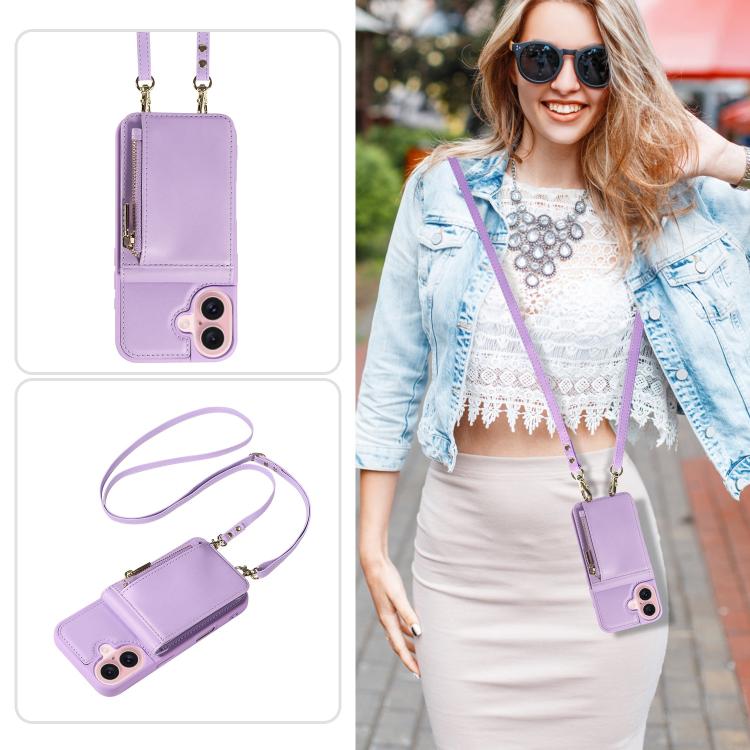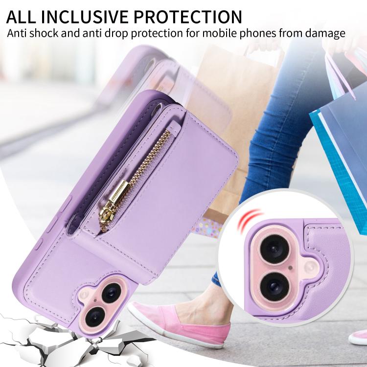 Funda de cuero tipo cartera con cremallera y cordón para iPhone 17 (morado)