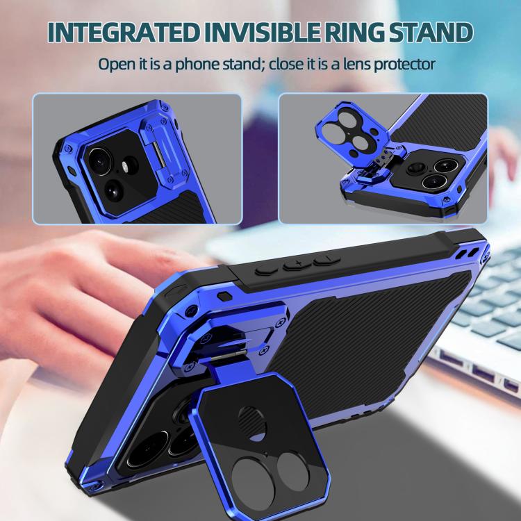 Funda de metal con soporte para lente de iPhone 17, resistente al agua IP54, triple protección MagSafe (azul)