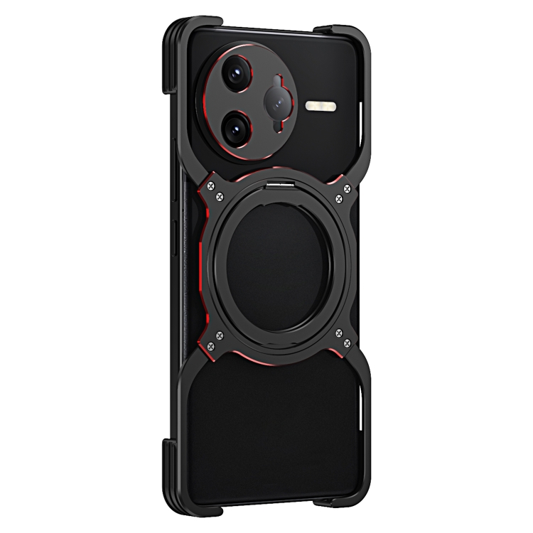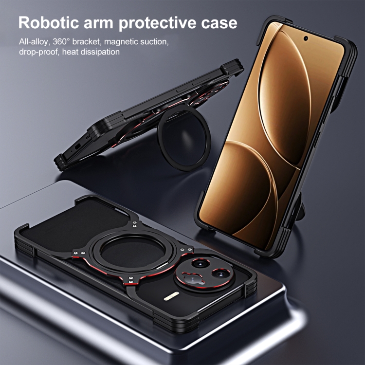 Funda de Metal para Teléfono con Soporte Magsafe sin Bordes y Brazo Mecánico para Redmi K80 Pro (Negro y Rojo)