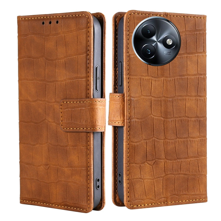 Funda de Piel para Itel S24 4G con Cierre Magnético y Diseño Cocodrilo (Marrón)