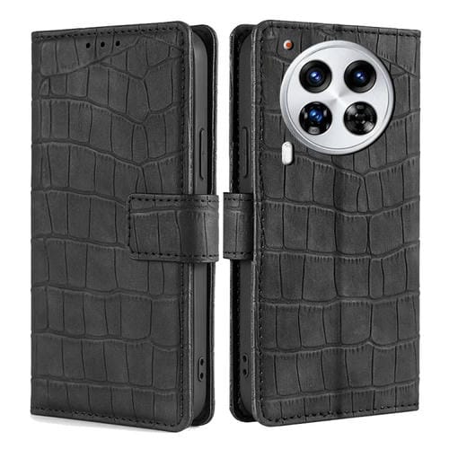 Funda de Piel para Tecno Camon 30 Premier 5G con Cierre Magnético y Diseño de Cocodrilo (Negro)